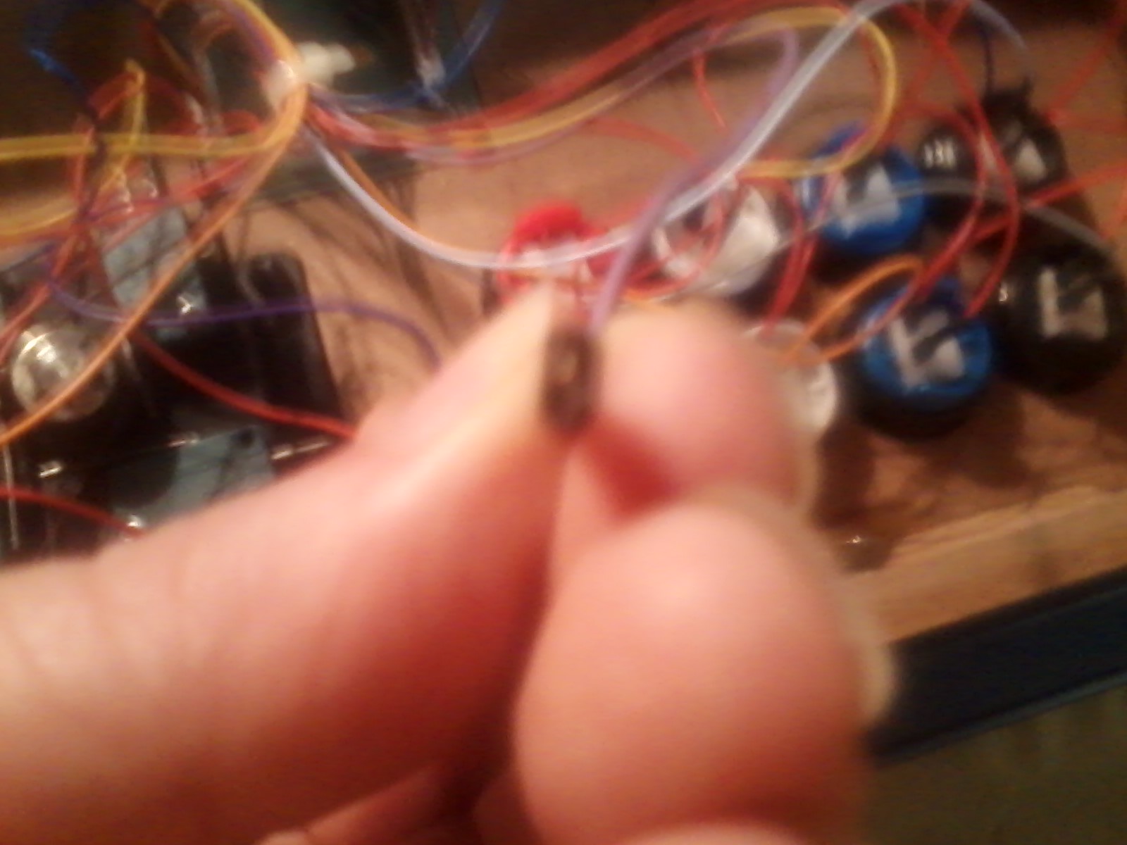 I asked on the forum how you do it, and they said just take it apart. I saw clear screws in the joystick part, so I unscrewed the 2 opposite directions and fanagled the ground wires in such a way that it would fit. It was a tight fit, but I managed to fit with the internal wiring looking like this: